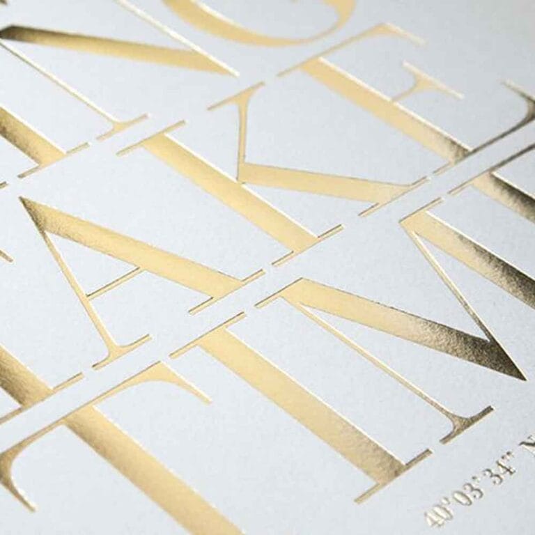 Ten siempre en cuenta que, al igual que el proceso de impresión tipográfica, el estampado en lámina requiere un gran esfuerzo por parte del impresor. Dependiendo del diseño final, puede ser necesario pasar el material por la prensa varias veces, añadiendo diferentes colores cada vez. Esto significa que el estampado en lámina puede ser caro. Sin embargo, en ocasiones especiales, el resultado final merece la pena.